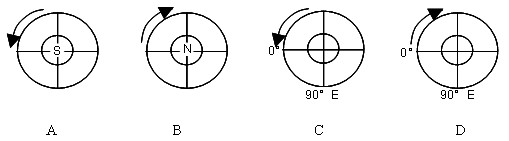 3、单选题 下列四幅图中,能正确表示地球自转方向的是