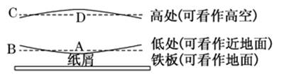 (2)若下图中的虚线表示不同高度上纸屑点燃前的等压面,则用实线表示出纸屑点燃后的变化。(1分)