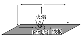 (1)在下面图中用线条和箭头画出该实验中的纸片和灰烬的运动过程。(5分)