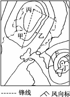 5、综合题 7月的某一天,图中的天气系统由A移向B