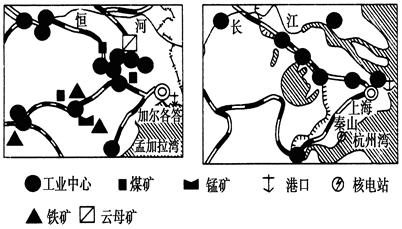 5、综合题  依据材料,完成下列各题。下图为印度著名的乔塔那格浦尔工业区和中国的沪宁杭工业区。