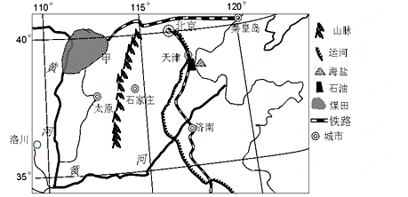 (1)描述图示地区主要地形区的分布状况。(3分) (2)陕西洛川是我国苹果主产区之一,分析其优越的气候条件,并说出该区发展苹果种植业的环境效益。(5分) (3) 甲区煤炭资源丰富,指出其运往上海最经济合理的运输方式,并说明理由。(4分) 天津是我国重要的化工基地,近年来在传统化工的基础上逐渐向低能耗、高附加值的精细化工方向发展。 (4)指出天津化工产业结构的变化,并简述产生这种变化的社会经济条件。(4分)
