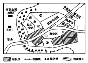 A.造纸厂由①搬迁到②,MN段铁路由③改线到④ B.造纸厂由①搬迁到⑦,MN段铁路仍保留在③的位置 C.①、⑥、⑦分别规划为商业区、科研文教区和纺织工业区 D.②、⑤、⑥分别规划为工业区、科研文教区和商业区