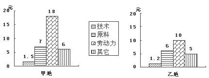4、单选题  读“甲、乙两地某企业2009年单位产品成本构成图(单位:元)”,产品市场价格均为34元。读图回答问题。