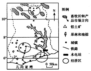 [? ] A.该国北部是热带草原气候,南部是热带雨林气候 B.建有大型水库,说明该国河流径流季节变化大 C.有多个经济区,说明该国是发达国家 D.该国除了铝土矿外,没有其他矿产资源和能源
