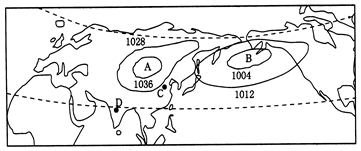 (3)D地7月盛行__________风,其形成原因是______________________________________,由此可见,季风气候的形成原因除_______________________________________________外,还有______________________________________________________等。(各2分)