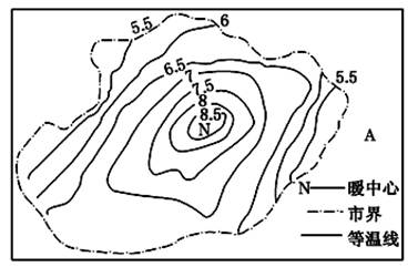 1.该城市市区年降水量大于郊区的原因是2.图中①、②、③、④四地中,最可能表示重化工业区的是