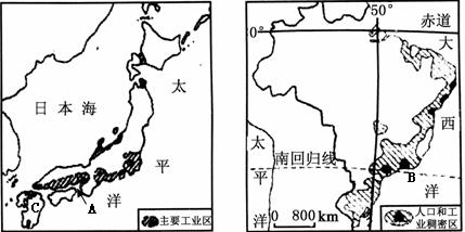 小题2:乙岛所在国家为日本,矿产资源缺乏,森林覆盖率高,科技发达,产品多出口国外,河流短小流急,水力资源丰富。山地、丘陵多,平原少,所以农业生产的规模小,以小型农业机械为主。所以本题选择C选项。
