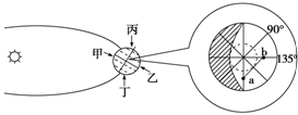 小题1:观测者从甲、乙、丙、丁四个角度附近能够观察到右图所示昼夜状况的是(  ) A.甲 B.乙 C.丙 D.丁