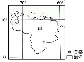 4、单选题  总部位于江苏徐州(约34°N,117°E)的某企业承接了国家甲(下图)价值7.446亿美元的工程机械订单。据此完成下列问题