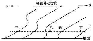 3、甲、乙、丙、丁四处,位于冷气团中的有