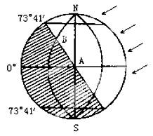 【小题2】与上图对应的太阳光照图正确的是(阴影部分表示黑夜)( )