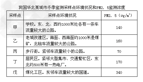 1.与世界卫生组织推荐值相比,所列采样点的PM2.5浓度均已超标。归纳监测点PM2.5污染物可能的主要来源。