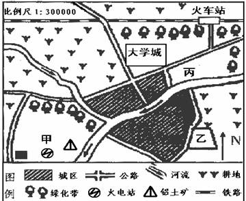 ?(至少答出3点) (3)该区域计划在丙处建设电子工业园区,你认为是否合理?,理由是? ?(至少答出3点) 5、综合题 读我国季风区某厂工业布局示意图,完成下列要求。