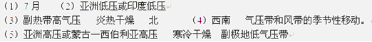 (5)大约半年后,大陆上形成 气压(名称),在该气压的影响下,A处的气候特征 。该气压切断的气压带是 。