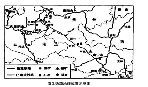 4、综合题 读“南昆铁路地理位置示意图”及有关资料。