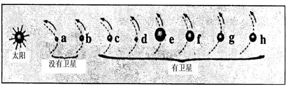 5、单选题 北京时间2007年10月24日18时05分,“嫦娥一号”探测器从西昌卫星发射中心成功发射。卫星发射后,经过8次变轨后,于11月7日正式进入工作轨道。据此并读太阳系模式图完成1—2题。