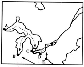 4、综合题 读“五大湖地区图”,回答下列问题。