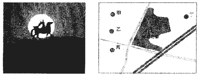 小题1:观察左图,图中的马上日出是在正前方拍摄的,甲、乙、丙、丁四处只有甲位于正前方,故选A项。