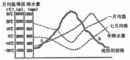 D.A、B两坡同一高度,降水量多的是A坡