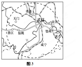 5、单选题  读图3“武汉城市圈示意图”,完成问题。