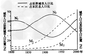3、单选题  读“发达地区与欠发达地区的城市人口和城市化水平对比”图,完成1~2题。