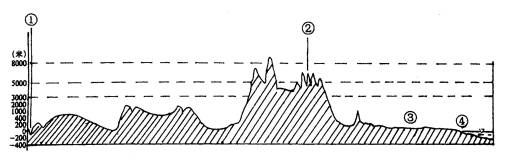 参考答案:【小题1】C 本题解析:【小题1】本题考查等高线地形图的判读。第6题,由于a > b,故M处中心海拔高于a,表示山坡上的小丘;N处中心海拔低于b,表示山坡上的洼地。 本题难度:一般 2、综合题 读图8,“某大洲沿30°N的地形剖面示意图”完成下列要求:(18分) 参考答案: 本题解析:首先根据剖面图的纬度和海拔确定剖面图中间的突起为我国的青藏高原。①处的为埃及的苏伊士运河,苏伊士运河对埃及的经济意义直接体现在收取运河通行费。缩短航程是对世界航运的最大意义。三江并流的成因主要是横断山脉多条南北走向的平行山脉的阻隔。③为我国的四川盆地,酸雨是主要的大气污染,④是我国的东部沿海,海平面上升是主要大气环境问题。世界共有四大文明古国,分别是古中国、古印度、古埃及和古巴比伦(今伊拉克一带)。 本题难度:简单 3、单选题 下图为等温线分布图,M地、N地的地形应为( ) |