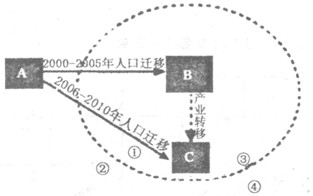 1、若图中2000~2005年人口迁移箭头为我国民工流动的主要方向,则A、B分别代表的省级行政单位可能是