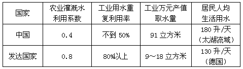 表二:我国与发达国家在水资源上的比较