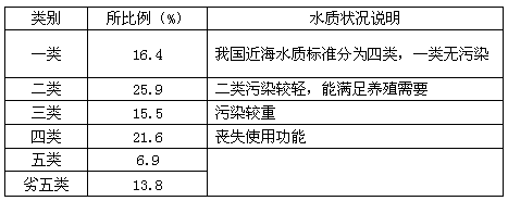 表一:我国2000年近海海域水质情况