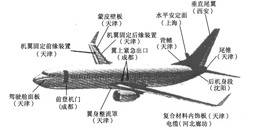 3、多选题 下图是美国新一代波音737飞机在中国的零部件生产地说明图。读图回答1~2题。