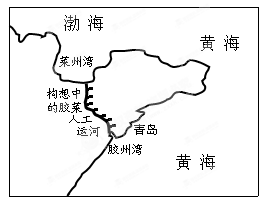 材料一?在青岛开幕的“胶莱人工海河论坛”上,有专家提出,从山东青岛的胶州湾到渤海的莱州湾,在胶莱河基础上拓宽、拓深,挖出仅次于苏伊士运河的"世界第二大人工海水运河"——胶莱人工运河。预计投资约1000亿元,通航后可以双向并行四艘船只,沟通渤海和黄海,实现渤海和黄海之间的水体交换。