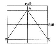 5、单选题 该图是全球昼夜分布图(AB是昏线),A地此日正午太阳高度是46°,读图回答问题。