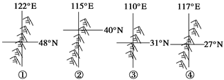 2.直接根据图示的经纬度位置和山脉走向可判断②为太行山脉,以东为华北平原,主要的粮食作物为冬小麦,以西为黄土高原,主要的粮食作物为谷子。