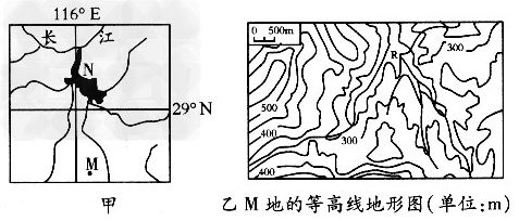 3、综合题 图甲是我国某区域的水系分布。某学校研究性学习小组对图甲中的M地进行实地考察,并查阅了相关资料,发现近30年来M地生态环境明显改善。图乙示意M地的等高线分布,表格示意M地的土地利用结构变化。读图、表,回答下列问题。