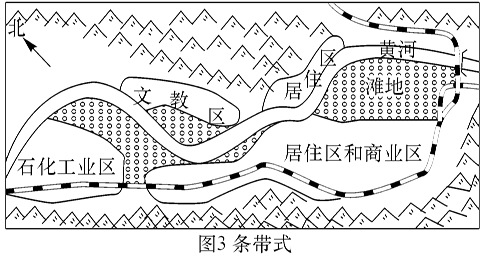 2、单选题  从城市形态上看,与下图西宁市同属一类的是