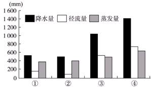 5、单选题 下图是“我国长江、黄河、珠江、松花江四大河的水量平衡示意图”,读图完成问题。