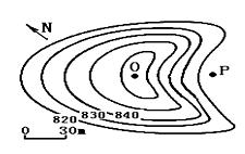 3、单选题 读下图, O点与P点的相对高度(H)最大可以达到(米)