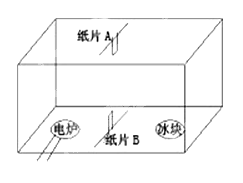 A.① B.② C.③ D.④ 参考答案: 本题解析: 本题难度:一般 2、单选题 近地面的风向一般(?) 参考答案:C 本题解析:近地面的风受水平气压梯度力、地转偏向力和摩擦力的共同影响,则风向斜穿等压线,由高压指向低压。 本题难度:简单 3、单选题 在一个长、宽、高分别是2米、1米和1米且六面都封闭的透明玻璃柜内,底面两侧分别放置一个电炉(有导线连到柜外)和一大盆冰块。在玻璃柜顶面中部的内壁贴一张下垂的纸片A,在玻璃柜底面中部的内壁贴一张竖立的纸片B(如下图所示)。在电炉通电一段时间之后,根据纸片A、B的偏动情况,可以模拟验证某一地理原理。 |