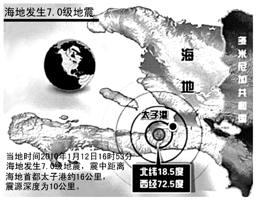 2、单选题 读图,了解海地(位于西印度群岛海地岛西部)地震震况,完成第15题。