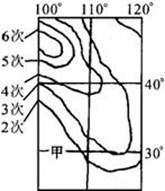 1.这种气象灾害有可能同时具备的“身份”是2.甲地受该种气象灾害的影响很小,主要原因是3.图中所示的灾害多发的季节是