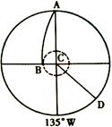 5、单选题 如图为极点俯视图,AB是晨线,CD是日界线,读图后回答问题。