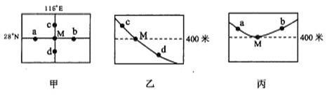 5、单选题 下面三幅图中,甲图为M地附近地区的平面图,乙图和丙图分别为过甲图相应的点作的地形剖面图。在一次较大的降水过程中,降落在a地的水体在坡面上的流向是。
