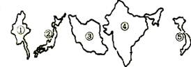 4、单选题 图中五个亚洲国家中,位于东南亚的一组国家是 5、单选题 下图中虚线箭头表示的是物体原来的受力方向,实线箭头表示受地转偏向力后物体的运动方向。A、B、C、D、E五处箭头所表示的物体实际运动方向正确的是 |