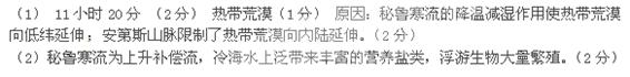 A.①处海域冬季洋流东流 B.②处海域有寒暖流交汇,形成渔场 C.③处海域有上升流,形成渔场 D.④处沿海有荒漠景观 参考答案: 本题解析: 本题难度:一般 3、综合题 阅读下列材料,回答问题。 参考答案:(1)针叶林;日本暖流;北太平洋暖流 本题解析: 本题难度:困难 4、综合题 读下图回答下列问题。(8分) 参考答案: 本题解析:略 本题难度:一般 5、综合题 下右图示意左图中MN断面冬、夏季的海水盐度分布,读图回答下列问题。 参考答案: 本题解析: 本题难度:一般 |