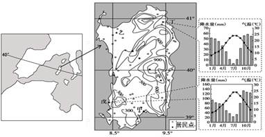 5、综合题 (11分)该图所示为某岛屿等高线分布图(单位:米)及岛上两地气候资料图。据此分析回答下列问题。