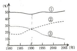 4、单选题 该图为我国东部某省三大产业产值比重变化图。读图回答问题。