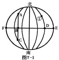 小题1:从A到B再到C过程中,南北方向上始终项南运动;东西方向上,可利用与经线AC的位置关系,同一条经线上无东西差别,故AB阶段逐渐向该经线以东运动,说明向东运动;BC段逐渐向西接近经线AC,说明向西运动。故先向东南,再向东北运动。