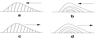 本题解析:(1)移动沙丘,缓坡为迎风坡,陡坡为背风坡。沙是扬起缓坡的沙,陡坡堆积(背风,风力很小易堆积)。所以堆积的一层层沙基本上是和陡坡平行。固定沙区才是一层层形成由里到外逐渐变新的堆积方式。所以,能代表移动沙丘的是a,正确答案为A。