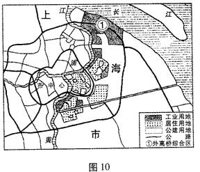 3、综合题 长江三角洲是世界著名城市带之一,上海为其龙头城市。图10为上海浦东新区城市规划用地分布示意图。